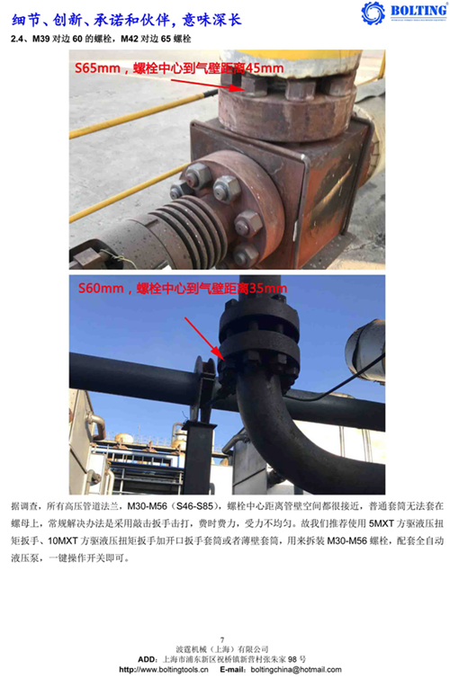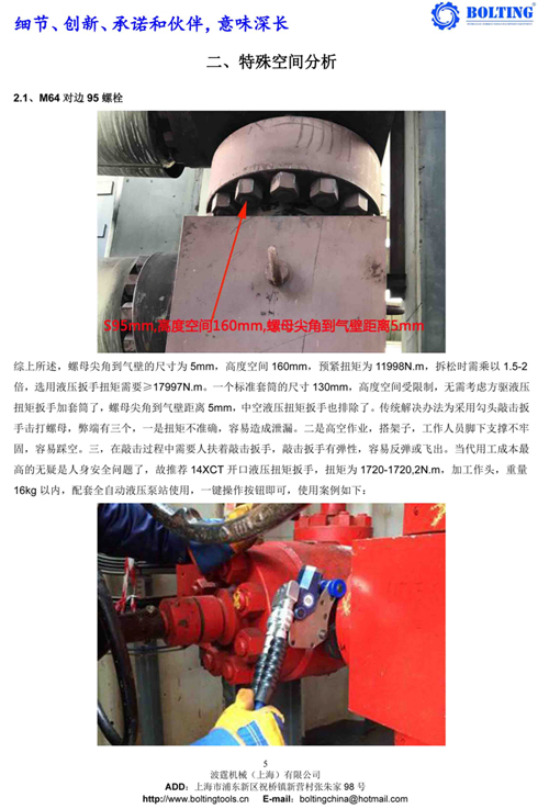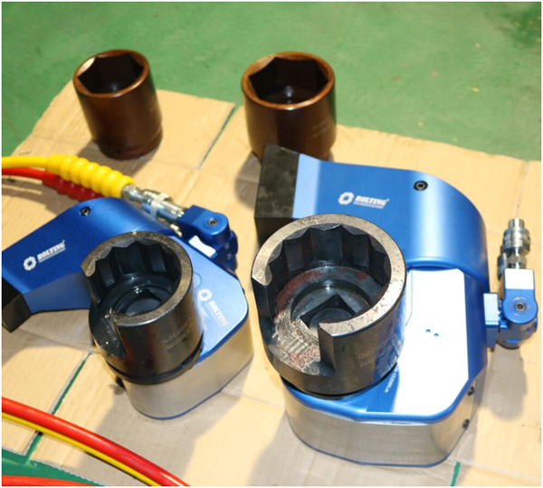 業(yè)主方之前從武漢購買過一套德國品牌液壓扳手,使用情況并不理想,由于液壓泵和開口液壓扳手較為笨重,故不考慮。