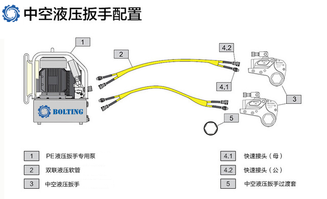 2)一種型號(hào)的液壓扳手,只能解決幾種相近的螺栓,一般配1-10個(gè)套筒;